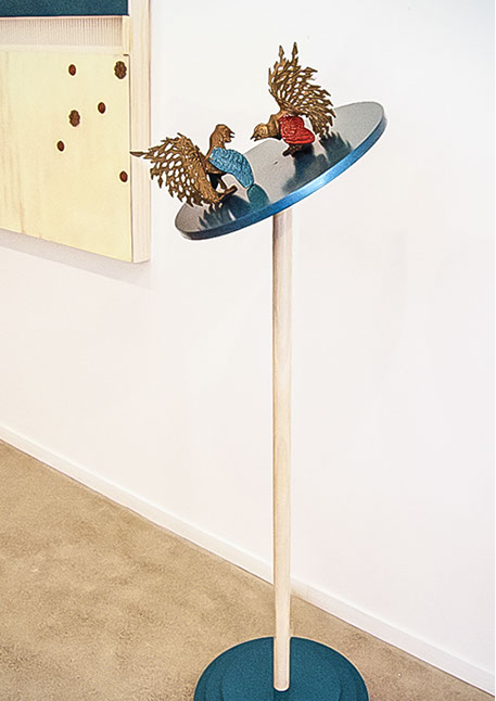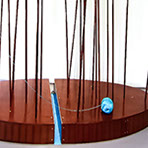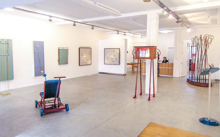 "The element of wit also appears in this show, as when a dribble of white thread complete with drops gives point to Fata’s Milk. All these assemblages are appealing but movement makes Nomadic Wonders outstanding. A group of tall, red shepherds, crooks bound at the top, are adorned with bells. A hidden mechanism shakes them to produce a lilting sound across the meadows of the mind.”